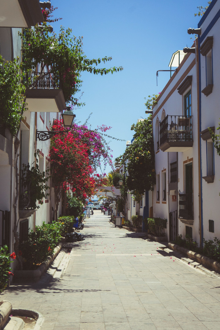 Det mest eftertraktade läget är nära hamnen och kanalerna, där du har den klassiska Puerto de Mogán-känslan precis utanför dörren. Här är det också lättast att leva “utan bil”. Nackdelen är att det ofta är dyrare och att det kan vara mer rörelse på dagtid, särskilt nära restaurangstråken.